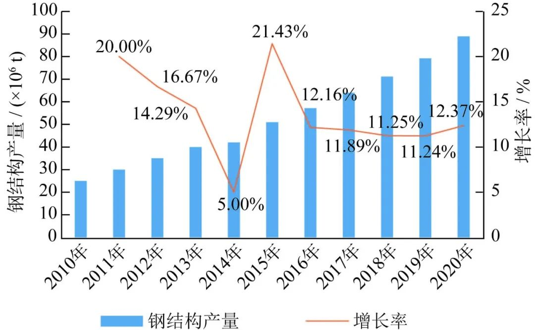 中国2010-2020年钢结构产量趋势